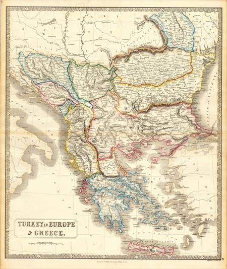 Ιστορικό Αρχείο ΔΗ.Κ.Ε.Π.Α.Π. Χάρτης των Βαλκανίων του 1852 που σημειώνει και την πόλη Yenidje, αγγλική έκδοση.